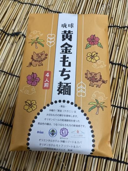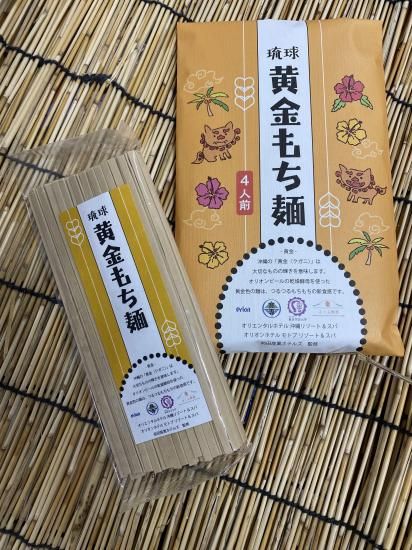 「黄金もち麺」は、沖縄特有の甘みと旨味を凝縮した乾燥ビール酵母を7%も配合した、平麺タイプの沖縄そばです。平麺なので、パスタとしても美味しくいただけます!黄金(くがに)色に輝く麺は、見た目にも美しく、食卓を一段と華やかに演出します。ゆでると弾力が生まれ、つるつるもちもちの滑らかな喉越しをお楽しみいただけます。
